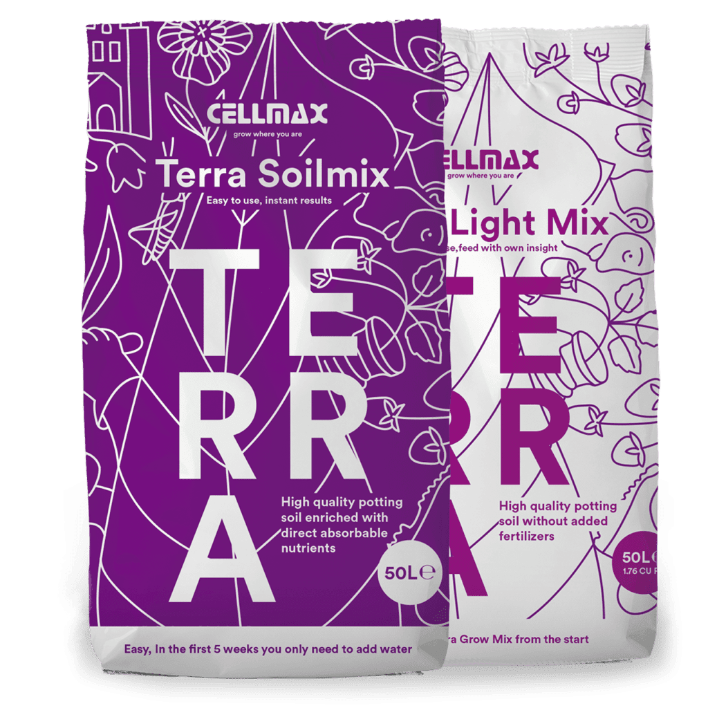 Hay dos tipos de tierra para macetas Terra. La mezcla universal se puede usar para casi cualquier cosa y siempre brindará un excelente resultado debido a los fertilizantes agregados. La mezcla ligera no tiene fertilizantes añadidos. Esto suele ser mejor para germinar semillas. La mezcla ligera también es ideal si quieres tener un control total sobre la fertilización.